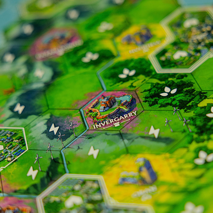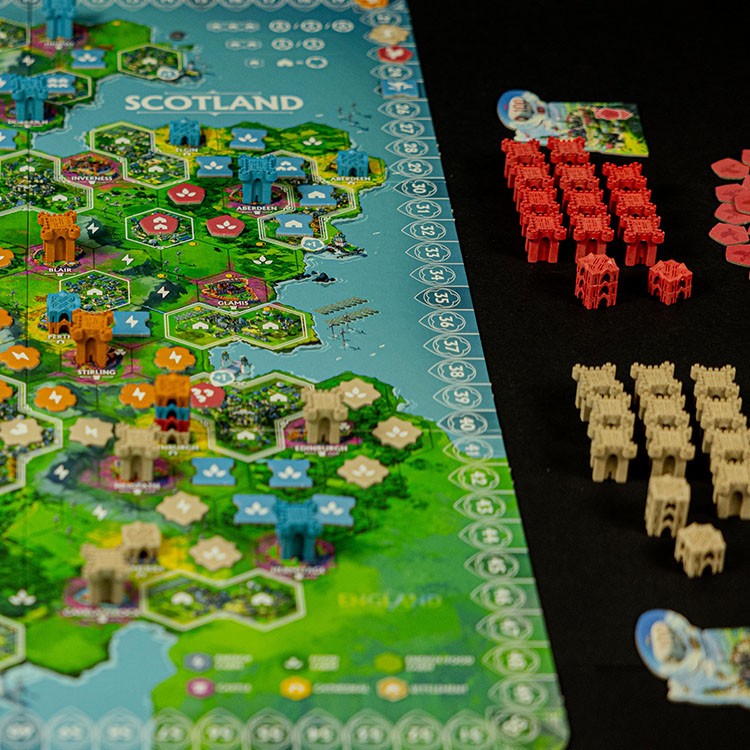 Following a series of calamities that left civilization in shambles, societies around the world are being rebuilt anew in harmony with nature. Scotland lies in ruins and the ancient clans have taken it upon themselves to restore the land. As clan leaders you will compete for strategic control of the land by rebuilding its prestigious castles.