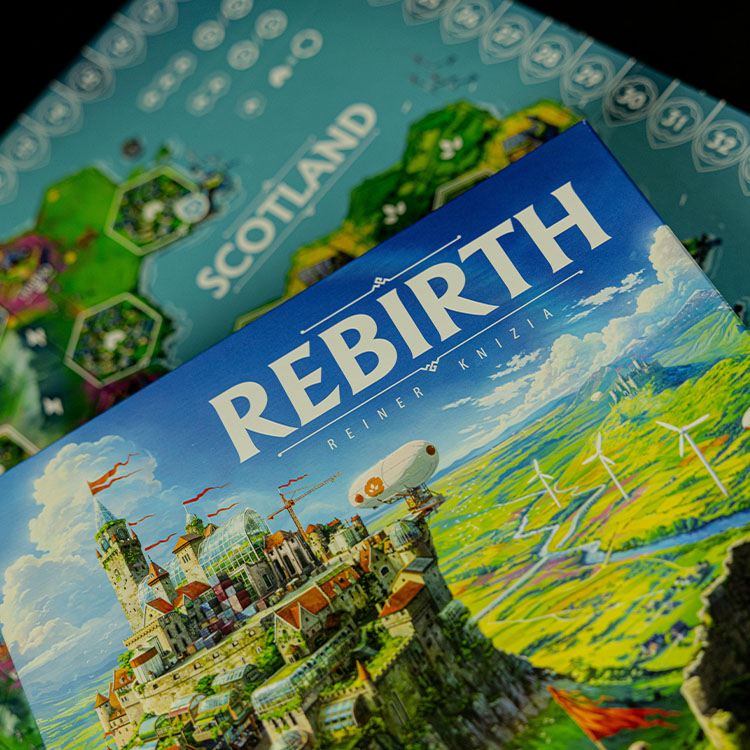 Rebirth is a new, tile-laying game from Reiner Knizia. The game revitalizes this classic genre by combining Knizia’s elegant mechanics with Mighty Boards’ evocative world building. The result is a eurogame with smooth gameplay, set in a lush and hopeful future.